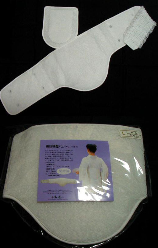 This is padding for the back to compensate for people with a higher ratio between their waist and butt. (It pads you out so that you can get a more tube like shape and so the kimono will have a cleaner line.)
