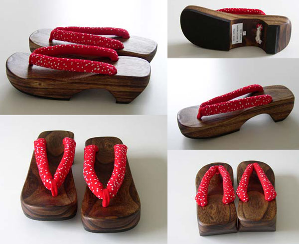 - Thongs of floral pattern fabric, rubber sole; nice craftsmanship;
