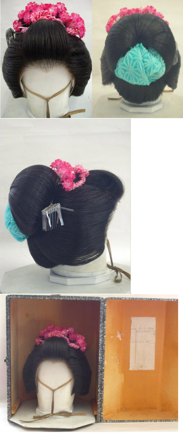 The hair ornaments are not accurate to a maiko, so they'll be removed, but I'm very happy to find a maiko wig. (Maiko's actually use their real hair, not wigs... but doing my hair in this hairstyle is impossible!)