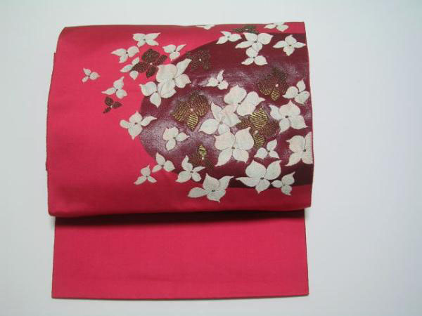 Burgundy Dogwood Pre-tied Obi in Otaiko Bow