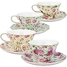 Gracie China by Coastline Imports Rose Chintz 8-Ounce Porcelain Tea Cup and Saucer, Set of 4