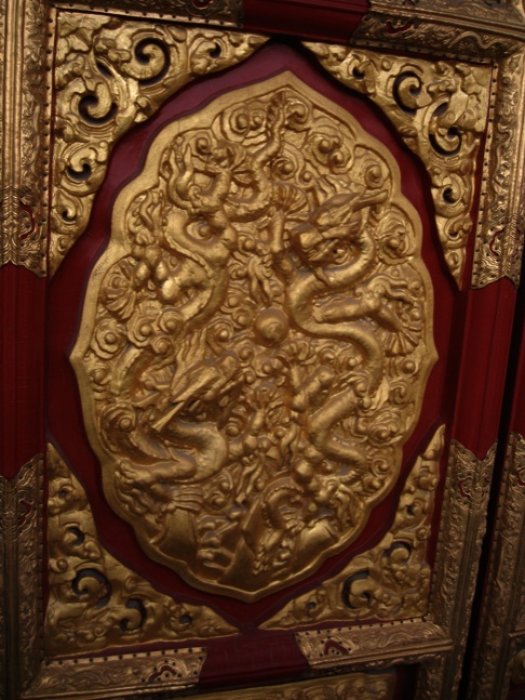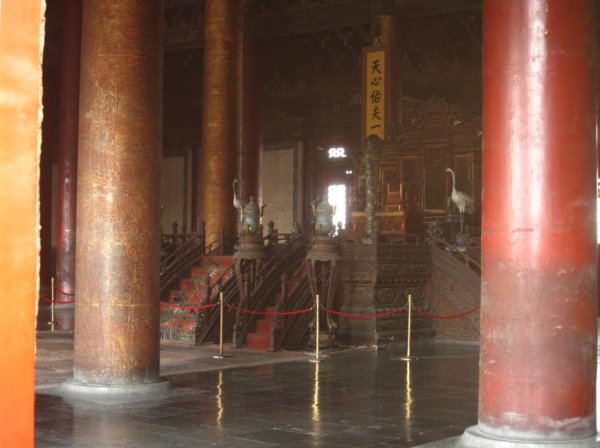 This was our first real experience with lack-of-line-following and pushiness in China. There’s maybe 20-30 people crowding around to see the Emperor’s throne room inside. If they’d just waited in line in an orderly fashion, everyone could have seen it pretty quickly… but instead, everyone was quite forcibly shoving each other and in order to see it at all, you had to shove yourself to get in, and then you had to shove your way out. Judy actually got stuck and I had to push some guys out of the way to help her get out. Ridiculous!