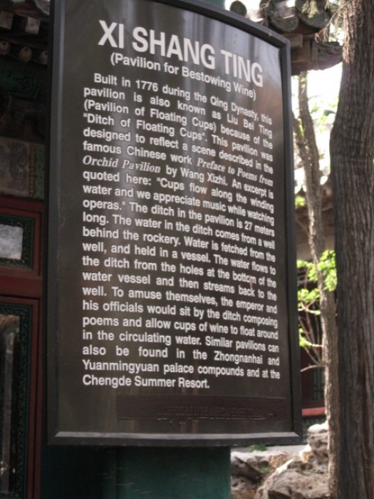 One of my favorite parts of the City, Xi Shang Ting (Pavilion for Bestowing Wine) which included the “Ditch of Floating Cups”… Oh, China, I’m not sure “ditch” is exactly the word you were looking for….