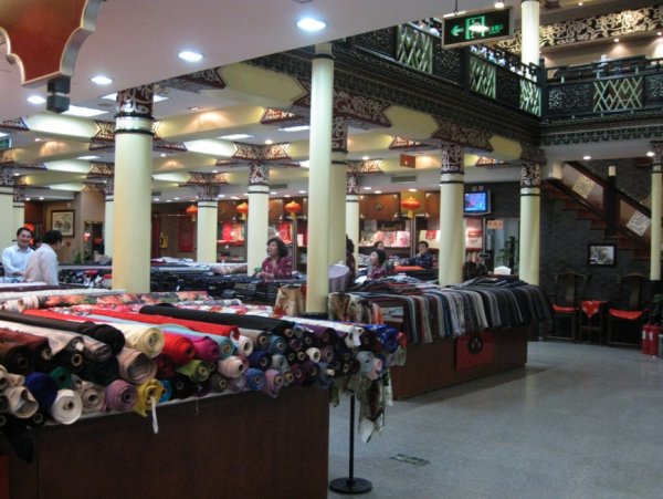 Here’s us in a cute shopping area. We were looking for a tailor so that I could get something custom made while I was there. Labor and fabric are relatively cheap in China, so I was really excited about having something custom made just for me! AJ and Judy had this done in Shanghai (for cheaper…!)