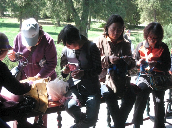 The park is free to seniors so a lot of them come in and knit together or play majong, or sing karaoke or dance or Exercise.