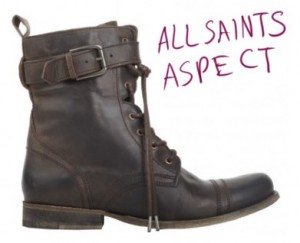 I tried the All Saints Military Boots on this week at the store, the leather was really soft, and I think once the leather stretched a little they’d probably be really comfortable. but $299 is a lot for some boots that I’m not sure about. (EDIT: I did end up buying the AllSaints boots…!)