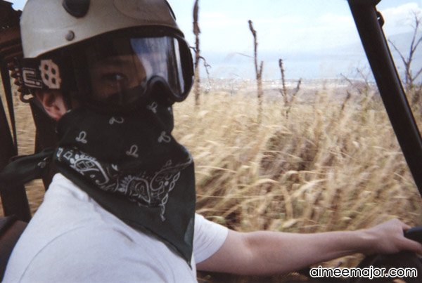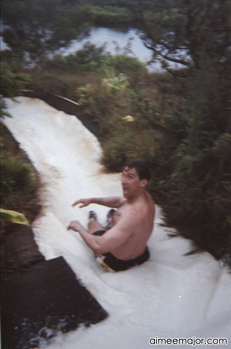 During the middle of the trip, they took a break from the ATV and went down a waterslide.